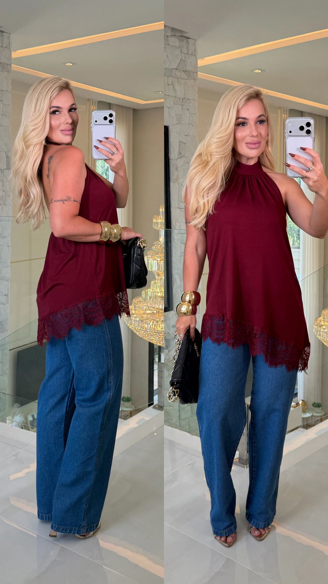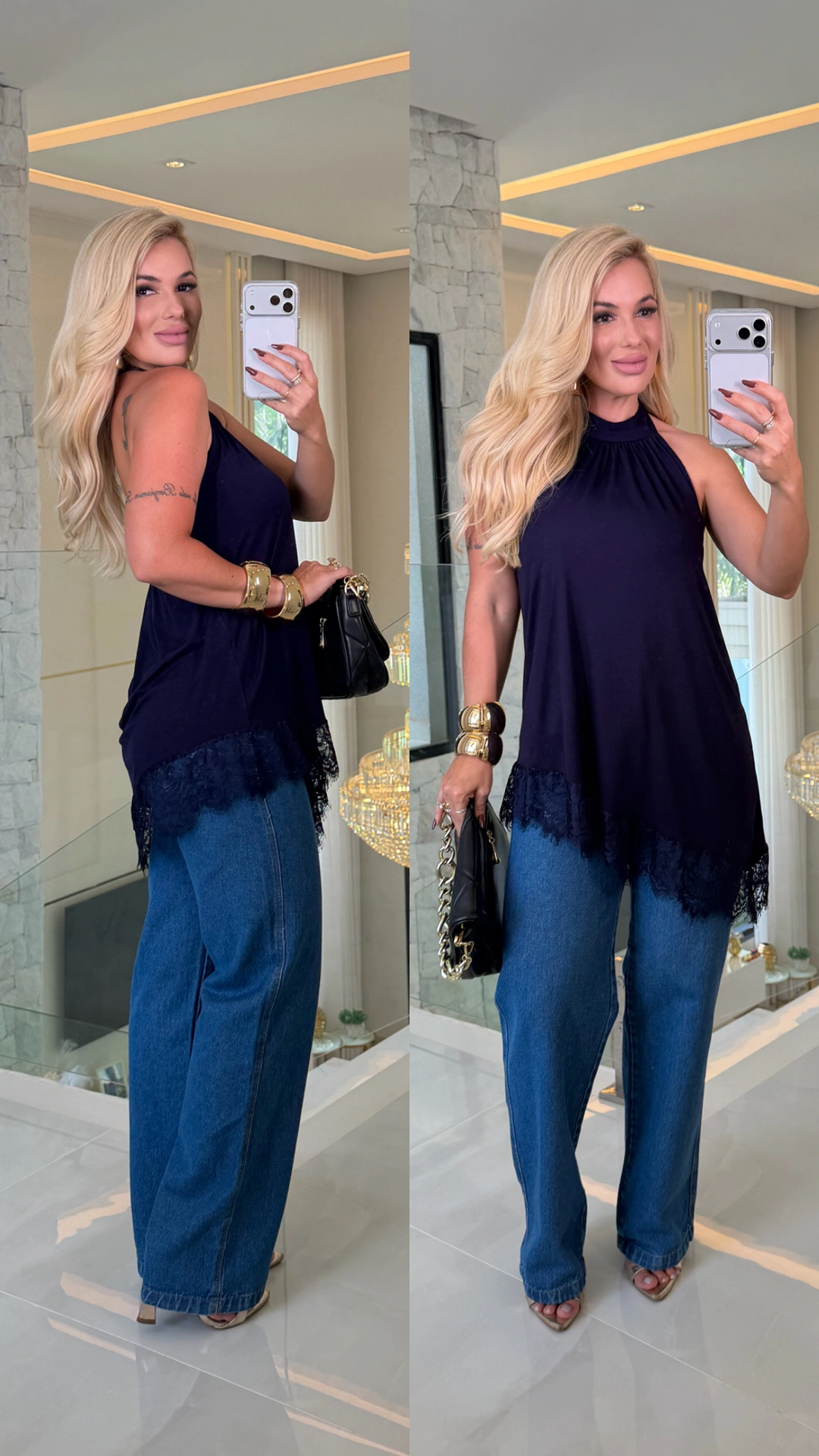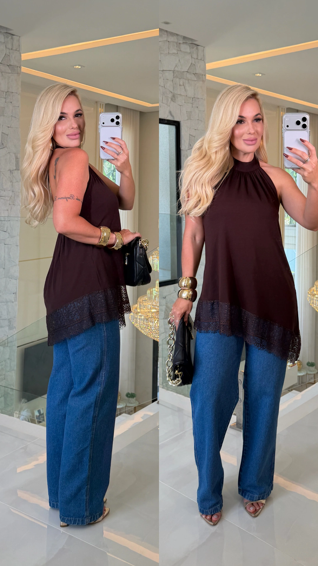 Blusa Fernanda Gola Frente Única C/ Renda 3712