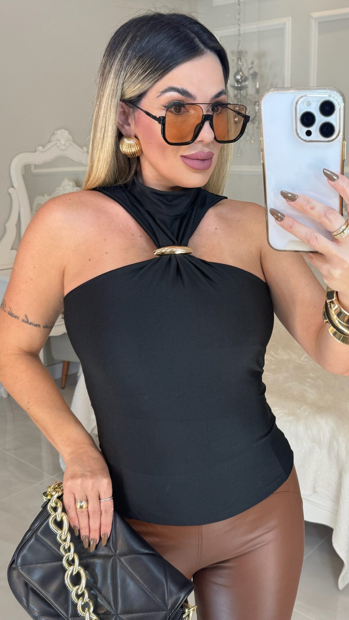Blusa Gola C/Broche Dourado Ana Julia – 2610