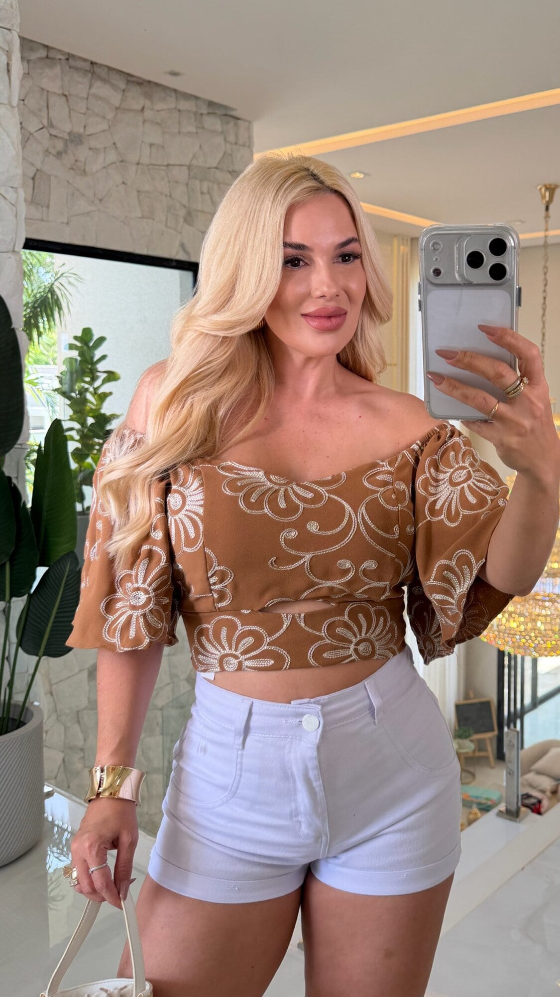 Blusa Manga c/ Bojo Bordada Dourado Daniella 3536