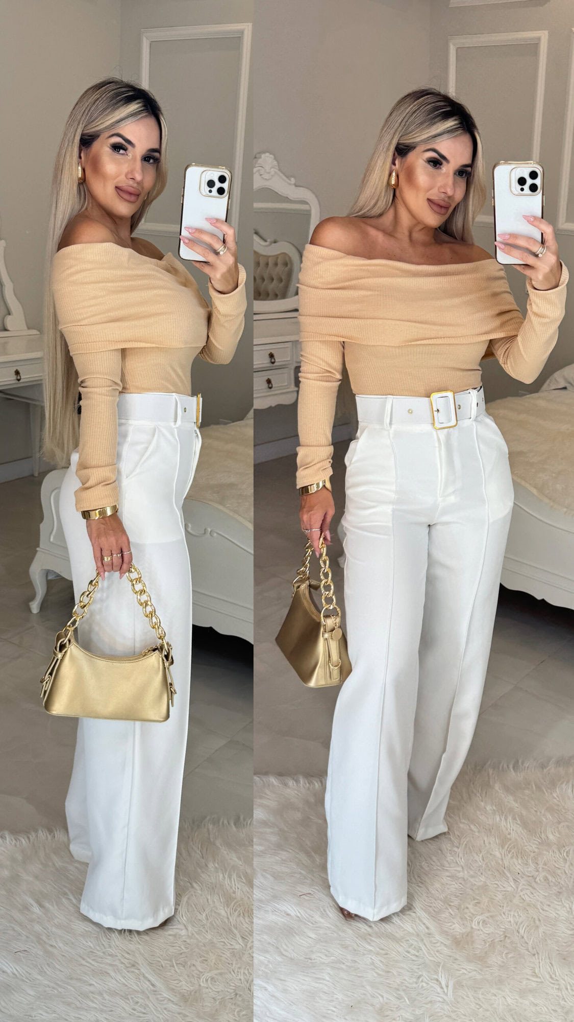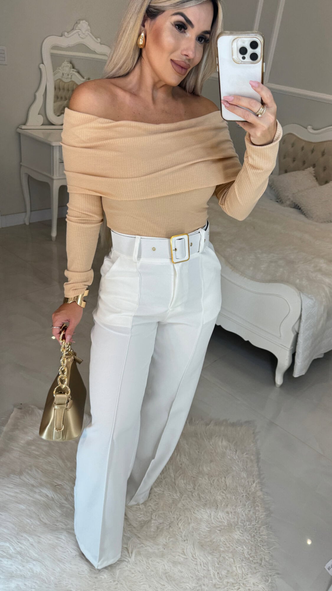 Calça Alfaiataria Com Cinto Dourado Nara – Off Wite 1527