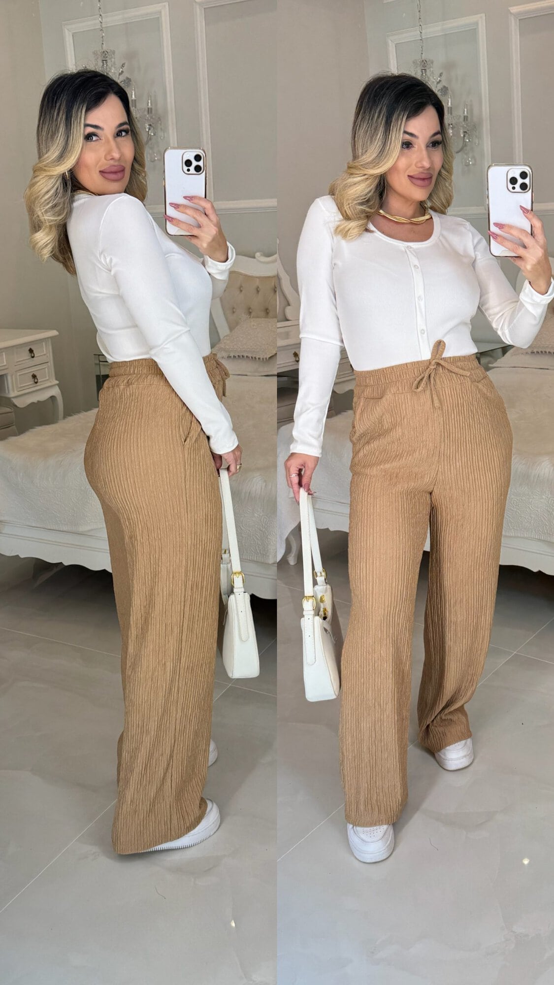 G Cintura Frente 35 cm contém elástico/ Quadril Frente 54 cm/ Comprimento 108 cm