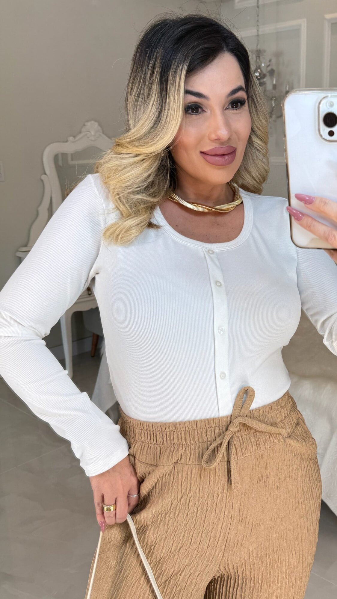 GG Cintura Frente 37 cm contém elástico/ Quadril Frente 56 cm/ Comprimento 109 cm