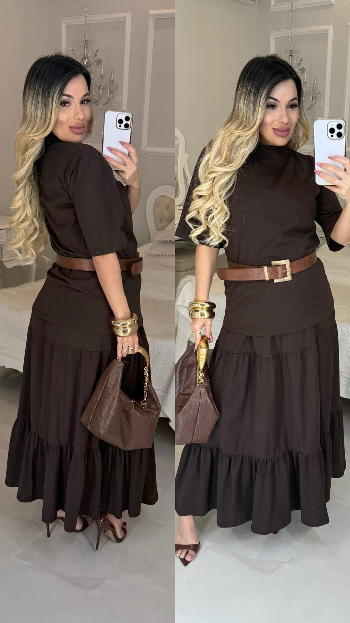 Cintura Frente 36 cm contém elástico / Quadril Frente 61 cm / Comprimento 86 cm