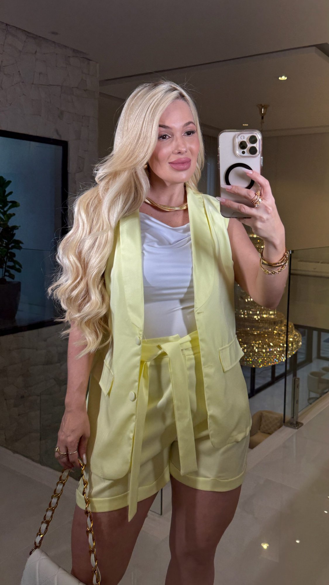 Saia: Comprimento 40 cm / Cintura Frente 32 cm contém elástico / Quadril Frente 49 cm