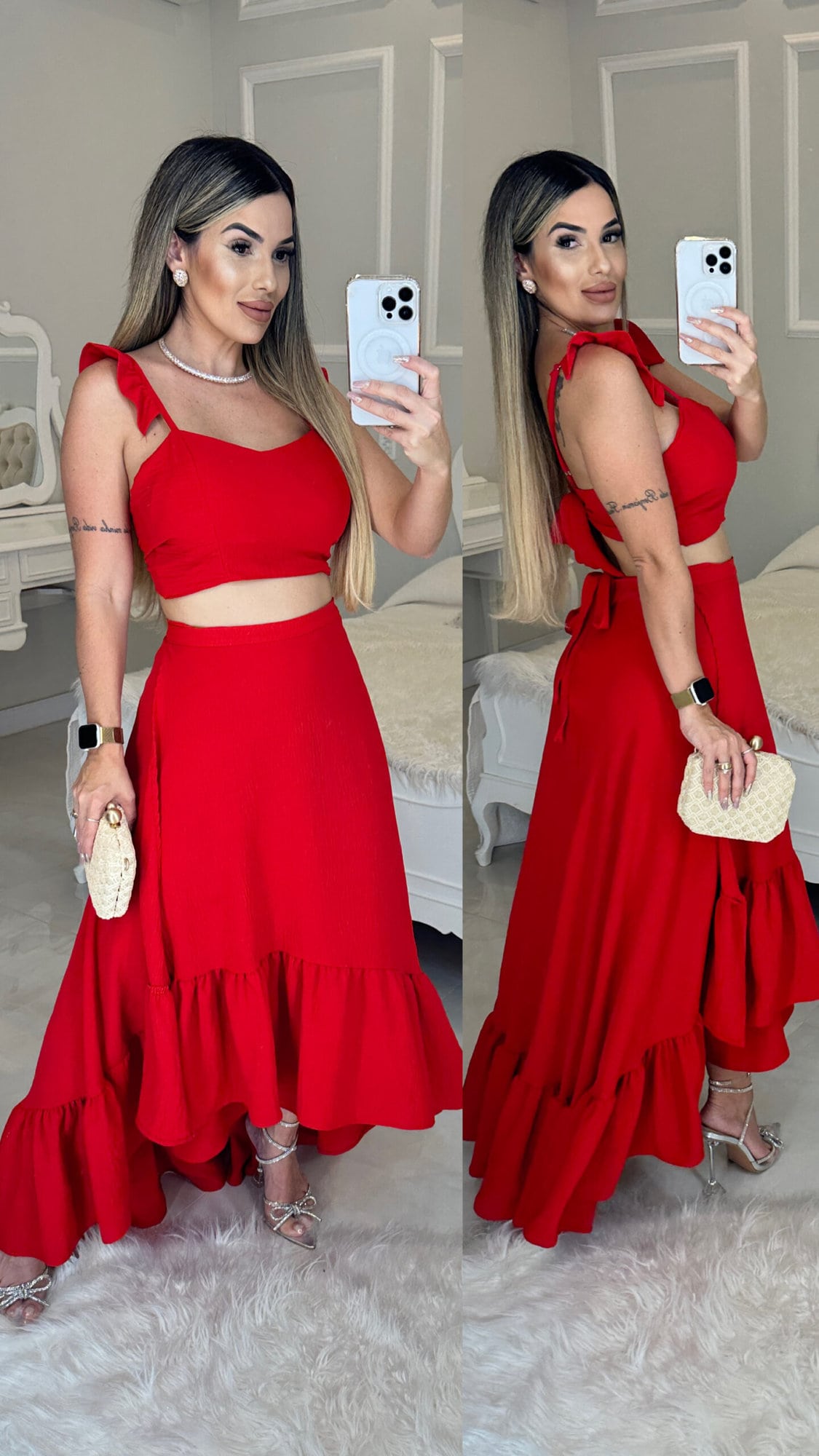 Parte de cima Top: Comprimento : 37cm/ Busto Frente 39cm/ Contém Amarração nas costas.