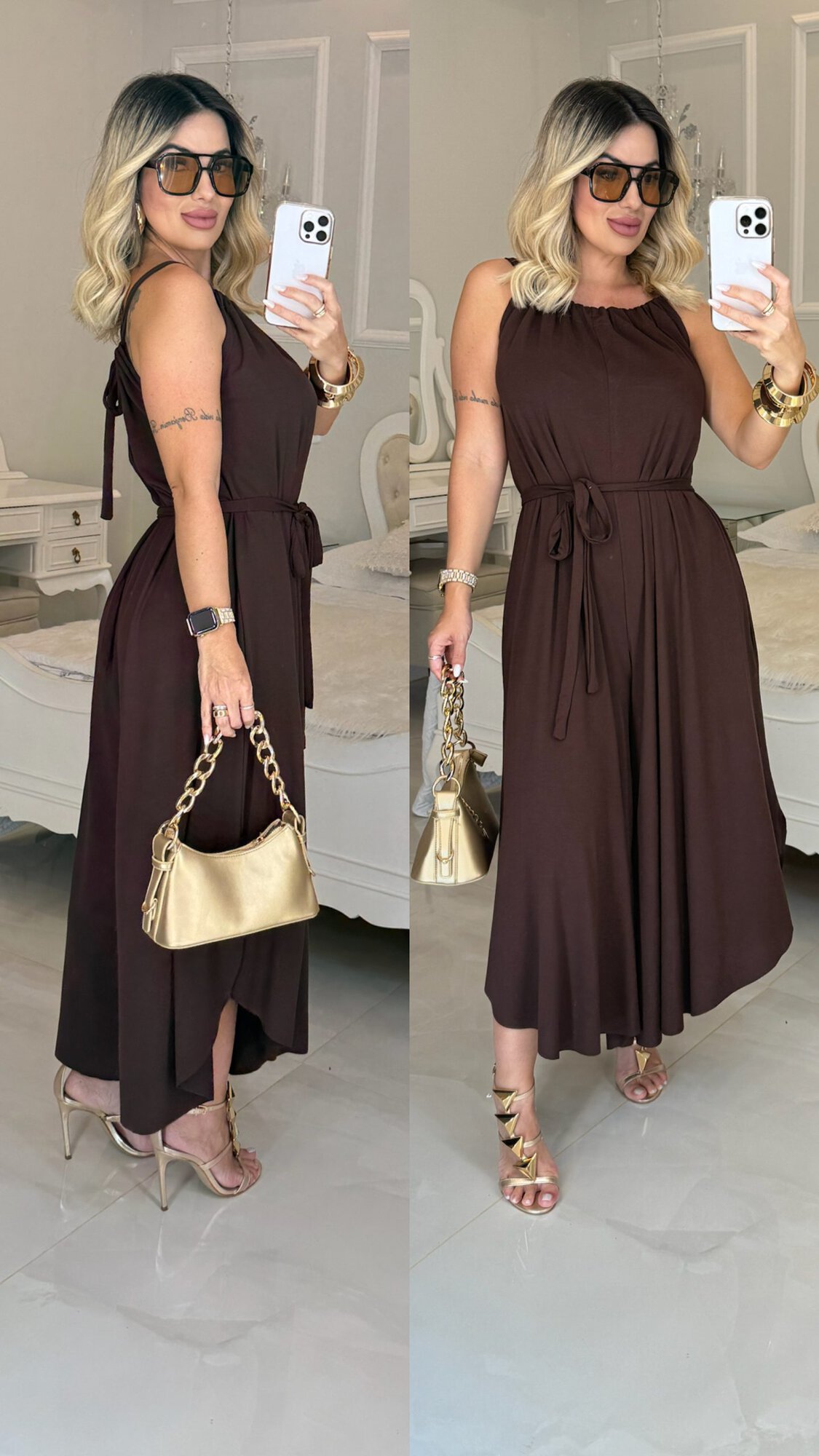 Comprimento 110 cm / Busto 52 cm Frente / Cintura 75 cm Frente / Quadril 85 cm Frente