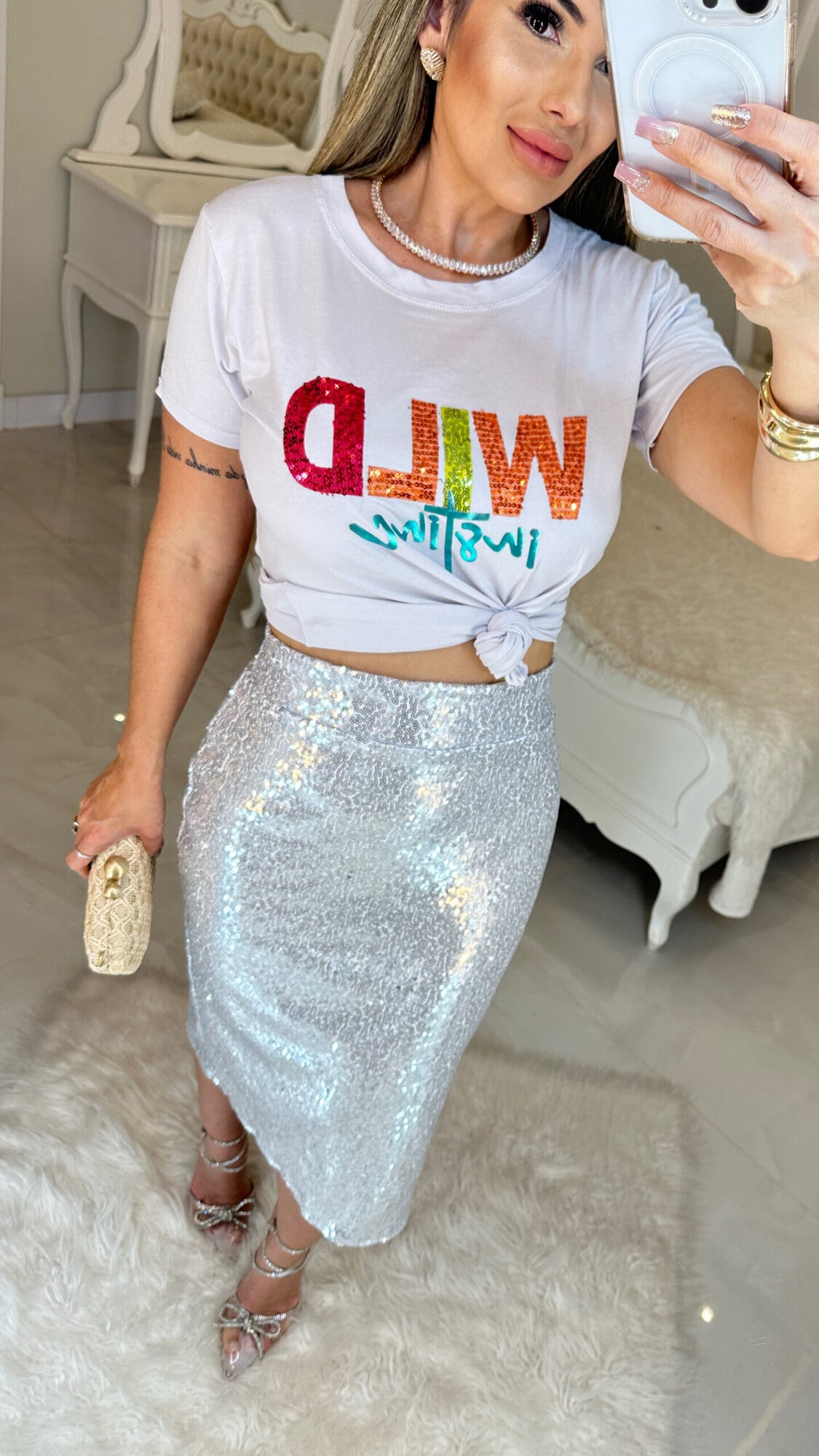 Saia Paetê Emma – Prata 1301
