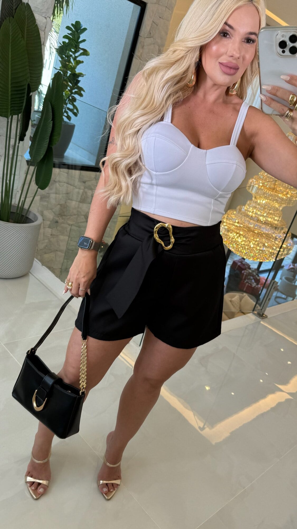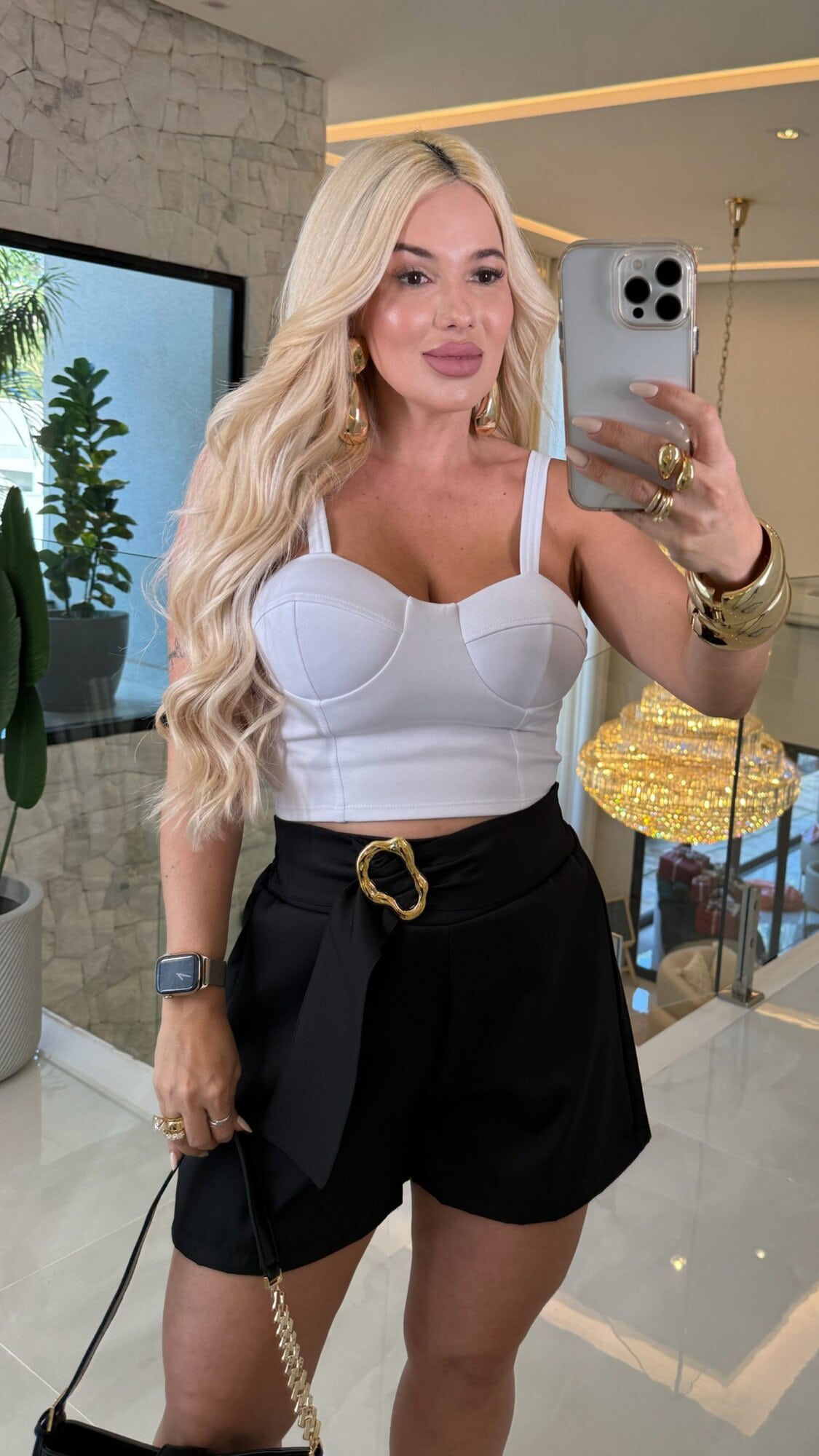 Tamanho GG: Cintura Frente 41 cm/ Quadril Frente 53 cm/ Comprimento 40 cm