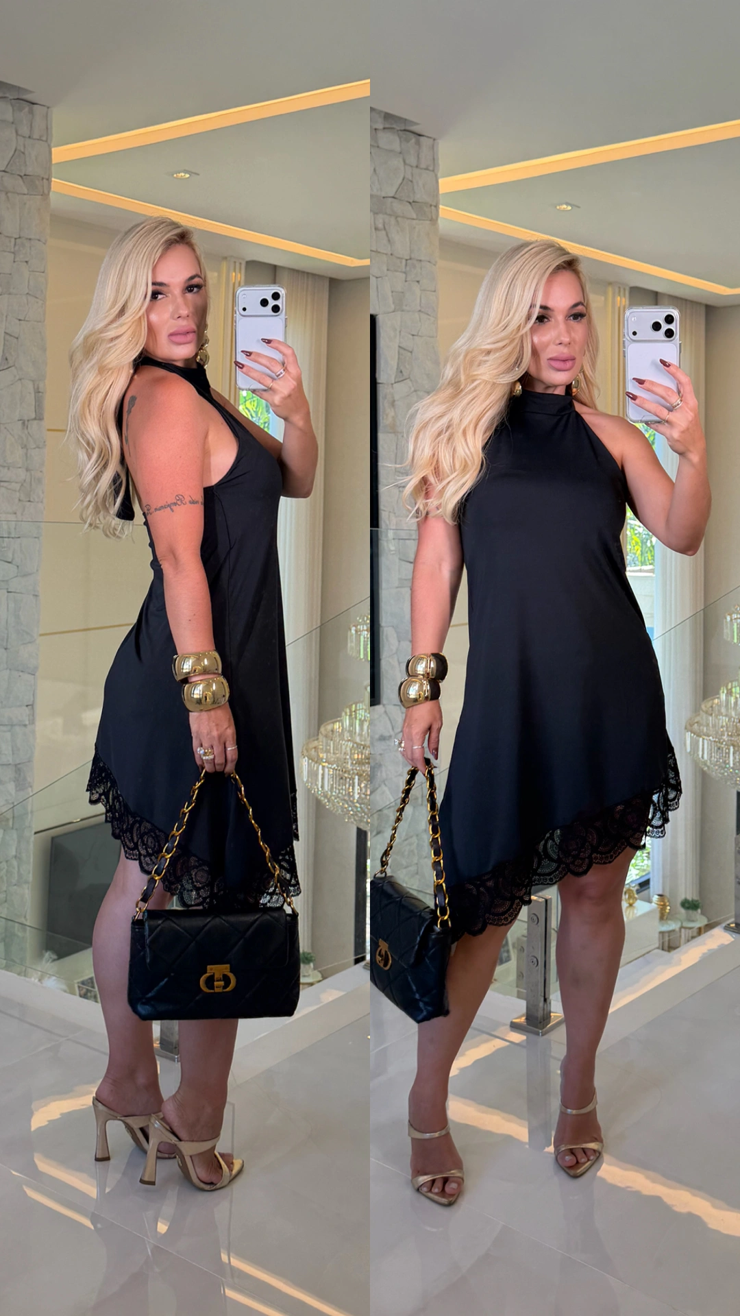Vestido Amanda Suplex Assimétrico c/ Renda c/ Bojo 3735