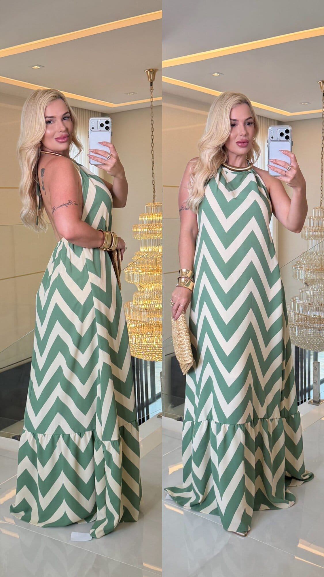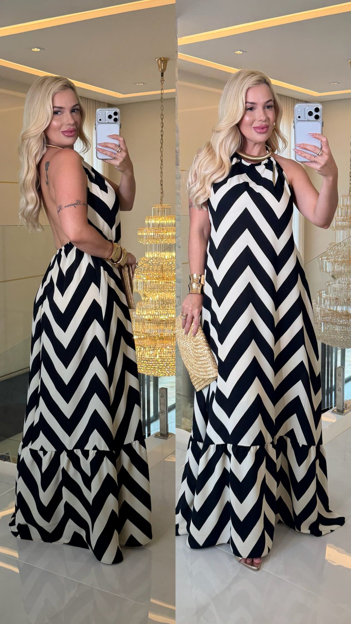 Busto Frente 37 cm/ Cintura Frente 49 cm / Quadril Frente 66 cm/ Comprimento 139 cm
