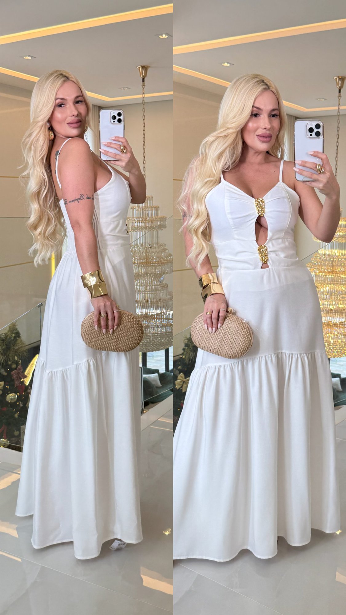 Busto Frente 28 cm/ Cintura Frente 39 cm/ Quadril Frente 47 cm / Comprimento 123 cm