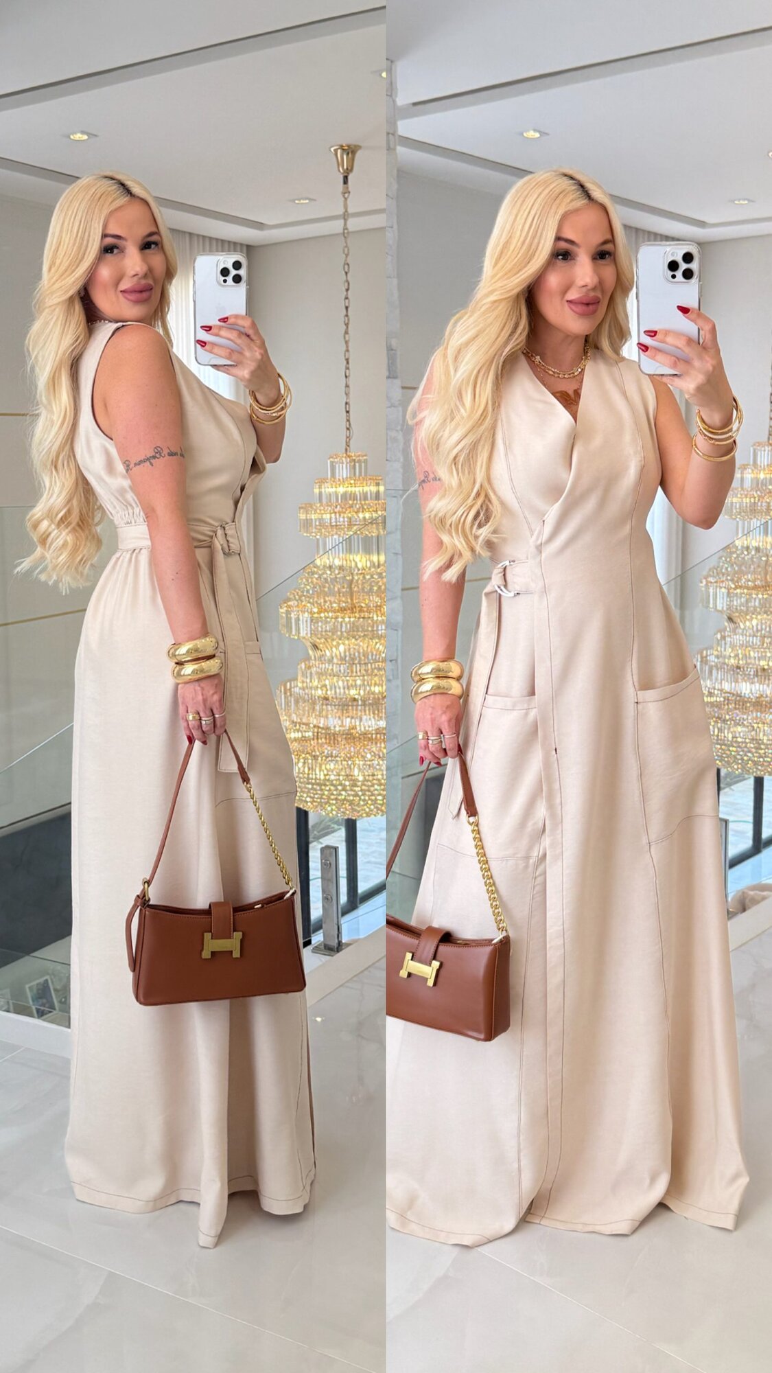 Busto Frente 36 cm/ Cintura Frente 55 cm / Quadril Frente 62 cm / Comprimento 140 cm
