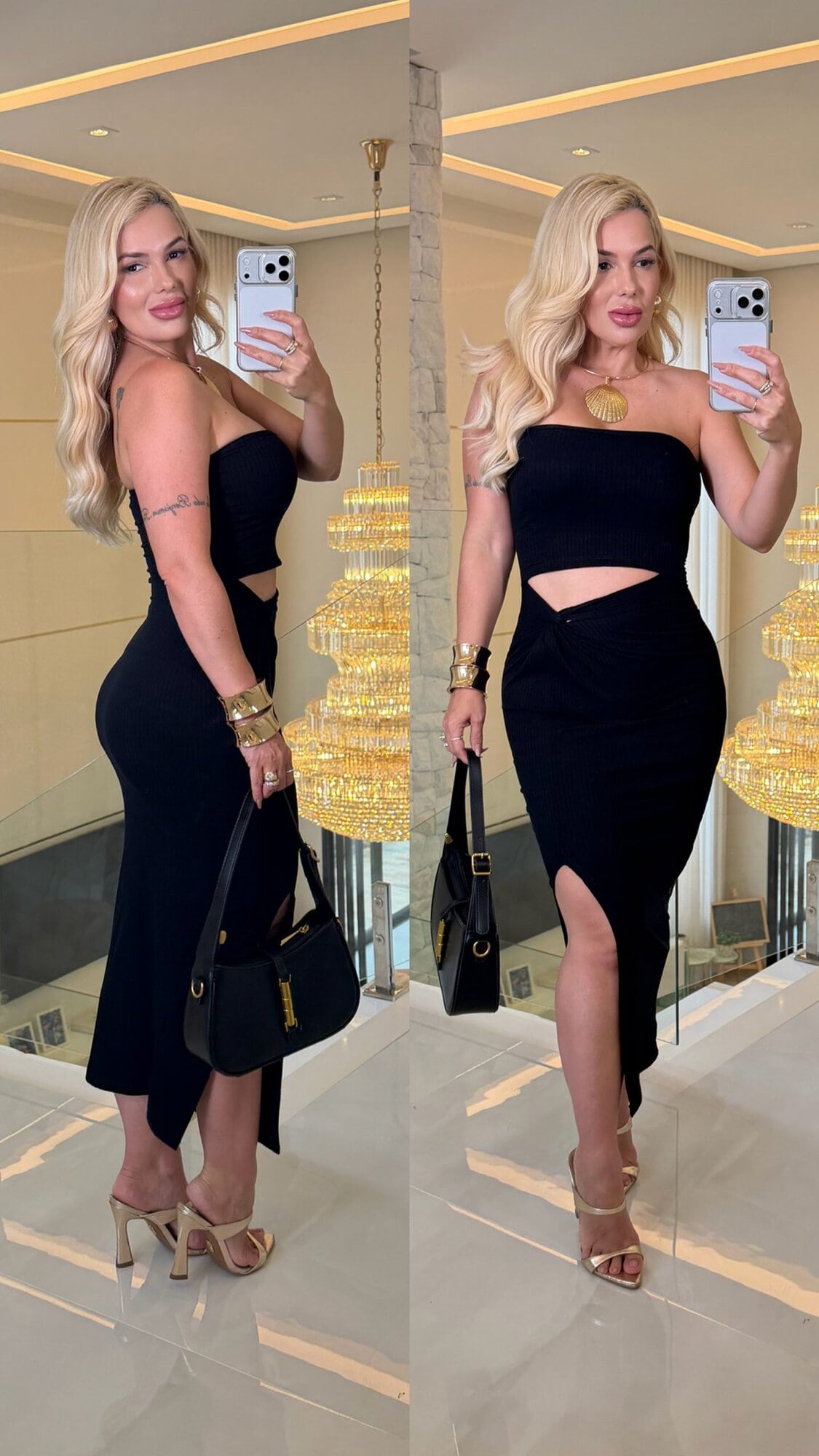 Busto Frente 29 cm / Cintura Frente 33 cm / Quadril Frente 40 cm/ Comprimento 110 cm