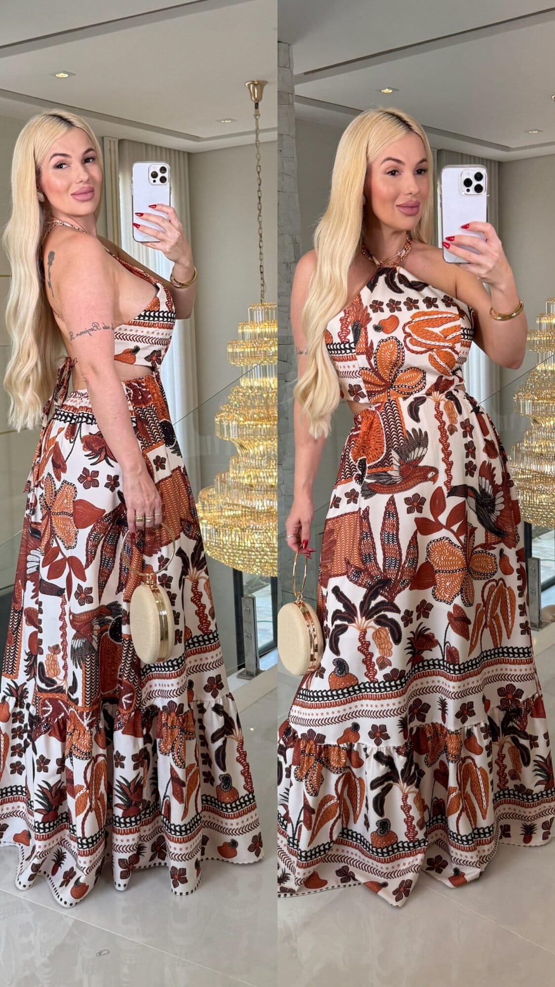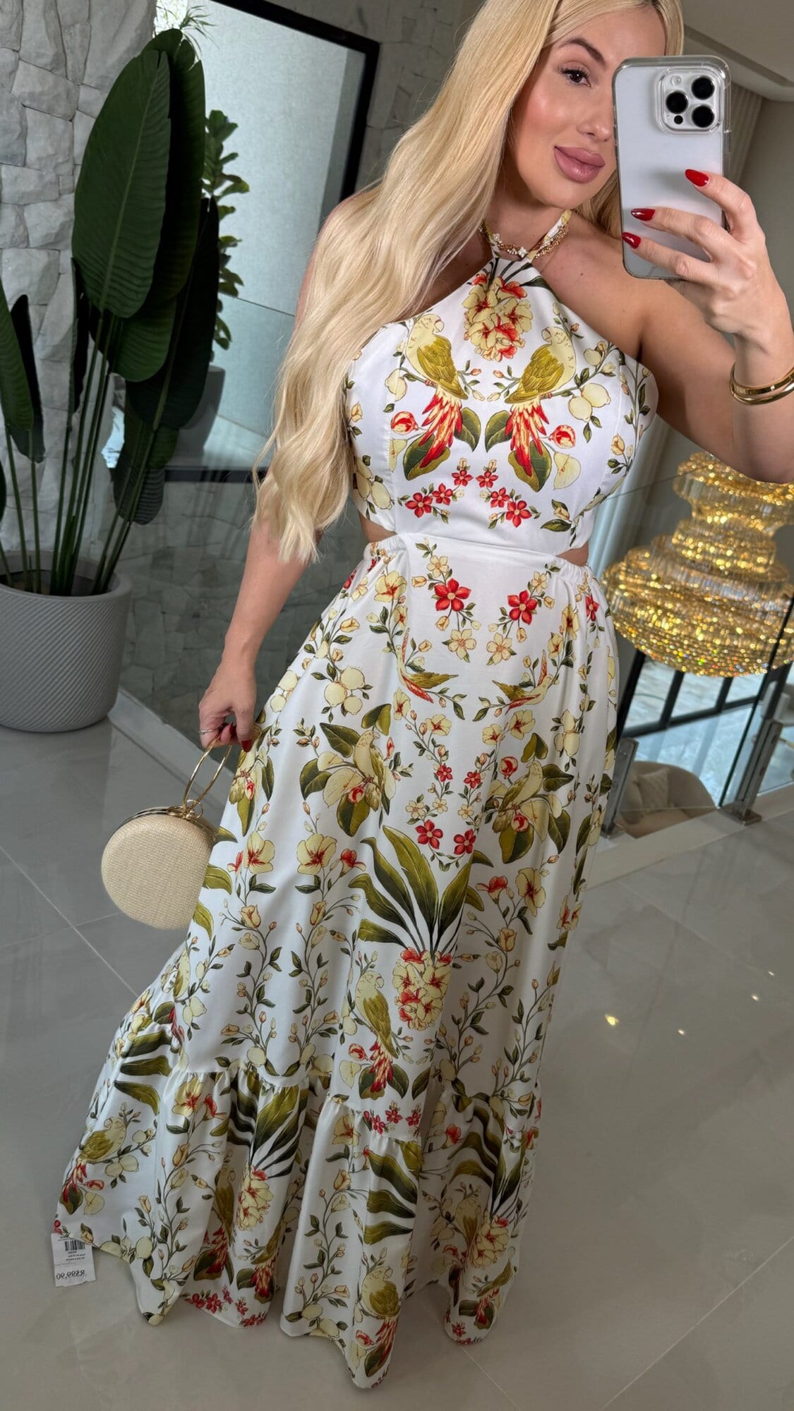Busto Frente 35 cm/ Cintura Frente 48 cm/ Quadril Frente 64 cm/ Comprimento 130 cm
