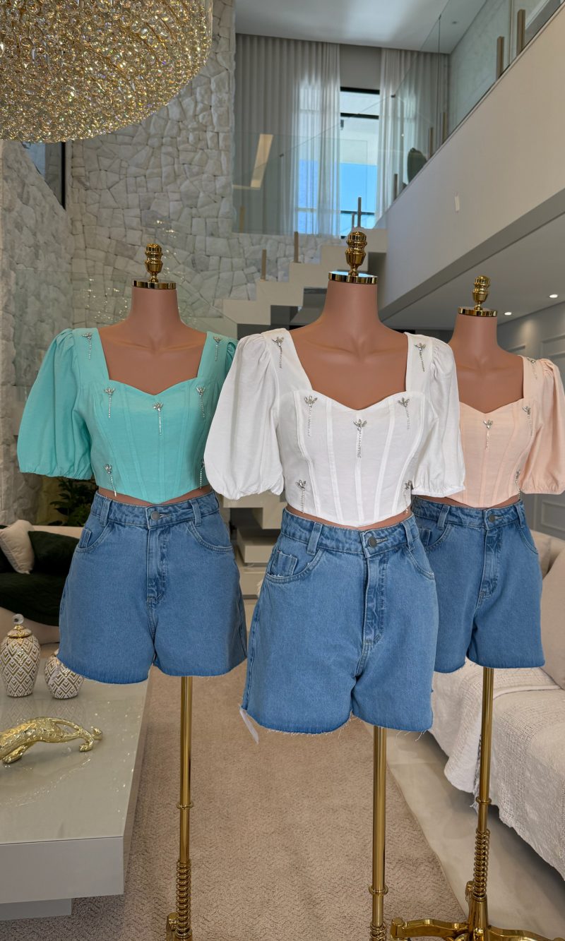 Tecido da peça: Jeans Dimensão da peça: Tam 36 Cintura 36 cm Frente / Quadril 40 cm Frente / Comprimento 35 cm Tam 38 Cintura 38 cm Frente / Quadril 42 cm Frente / Comprimento 35 cm Tam 40 Cintura 40 cm Frente / Quadril 44 cm Frente / Comprimento 35 cm Tam 42 Cintura…
